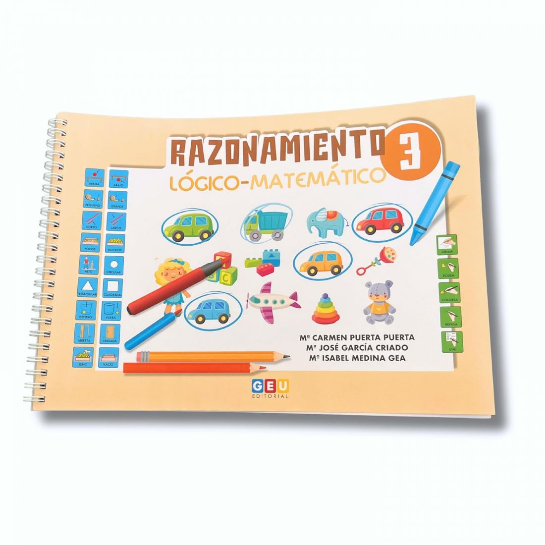 Este cuaderno mejora la capacidad de razonamiento lógico y resolución de problemas desde temprana edad, ayuda a identificar y diferenciar formas geométricas básicas, introduce conceptos de ubicación como arriba, abajo, cerca, lejos, entre, dentro y fuera. También fomenta el entendimiento de términos comparativos como más, menos lleno, vacío, abierto y cerrado. Además, también enseña a reconocer el orden y la secuencia con términos como primero, último y centro.