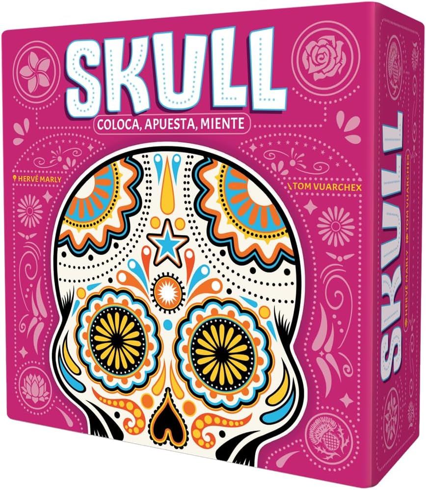 Skull: Coloca, Apuesta, Miente es un juego de mesa de rapidez. ¿Cuántos discos podrás voltear antes de mostrar la Calavera? Cada vez que sea tu turno, coloca un disco boca abajo sobre el tablero o apuesta sobre cuántos discos piensas que puedes revelar sin enseñar la Calavera…